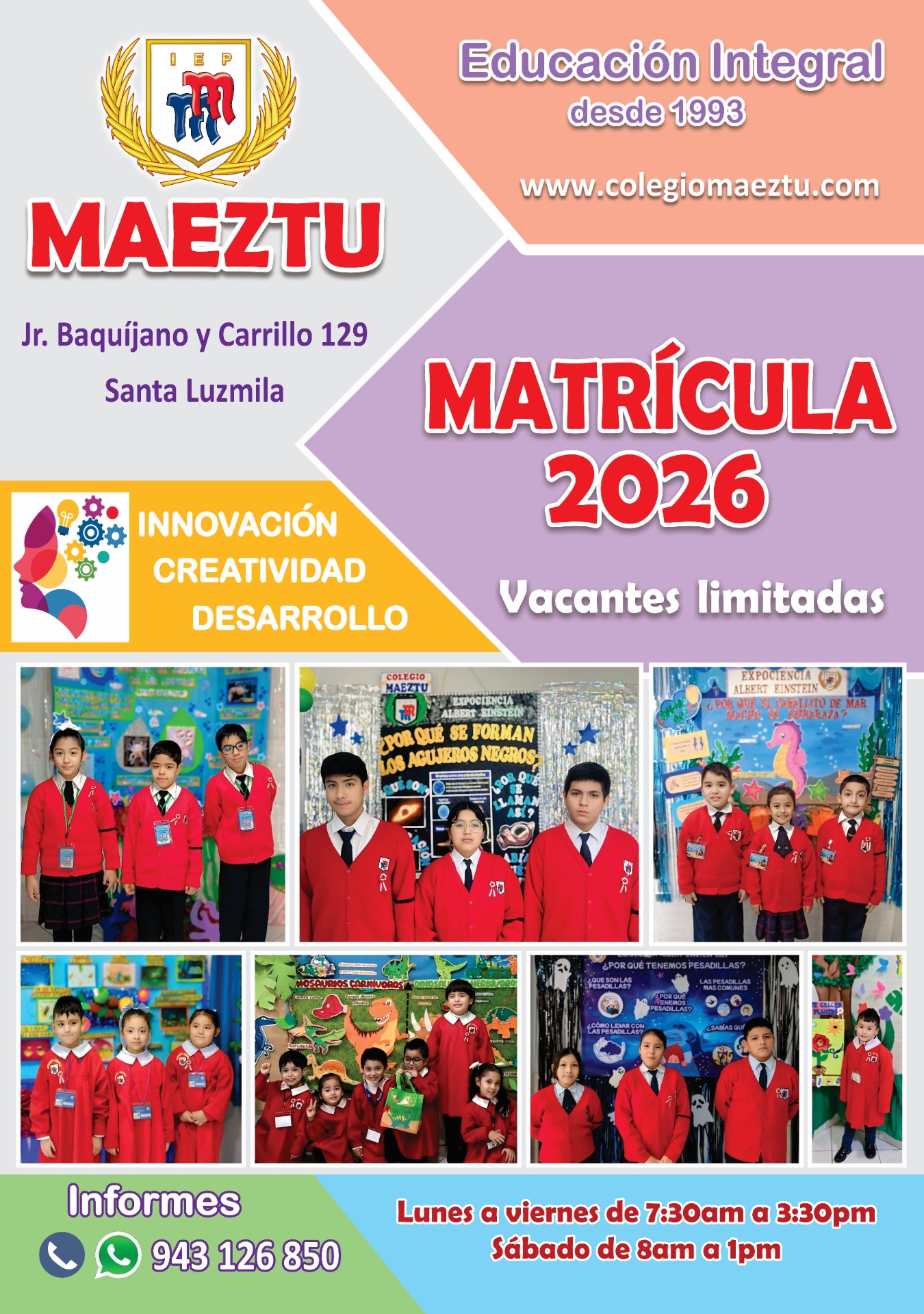 Brindamos una educación integral de calidad, con una sólida formación académica y de valores, en un ambiente que permite a nuestros estudiantes desarrollar todas sus capacidades.